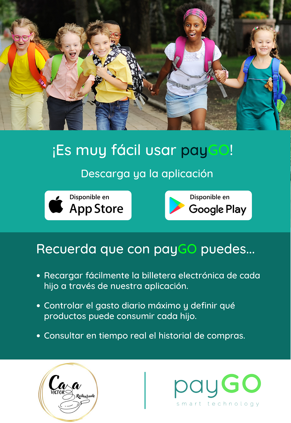 Anunciamos que por medio de la cafetería Casa Victor usaremos la plataforma payGO para la gestión de la tienda y restaurante escolar.