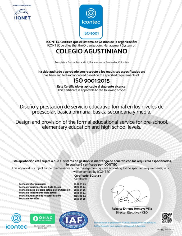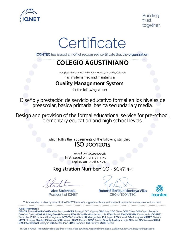Colegio Agustiniano Floridablanca inicia labores el 22 de febrero de 1967.